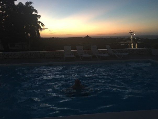 This morning my hubby woke up around 6:30. Too early for this girl! I slept in until almost 10:30!! I actually didn’t intend to sleep in, but I was obviously pretty tired! We’re on holidays anyway!! After our late breakfast of bacon and eggs, we decided that we would go shopping for souvenirs and things for the kiddos and then we would raft up the river on the bamboo rafts. The first shop that we went to was fairly close to our villa. As soon as you walk in they offer you a Red Stripe (beer), a pop or a bottle of water. We shopped there for about an hour. My hubby tried shots of different kinds of Jamaican rum and picked up a couple bottles. We also bought some things for the kids. Then we went to a newer shopping area. There was a sort of boardwalk area that you walked down , with shops lining each side. Tons of jewelry stores and many touristy shops. There was a good variety. There were also some people outside selling handmade items. We took a while checking out the different shops. We went into a jewelry store called The Royal Shop, think…The Royal something or other. There was gorgeous jewelry. My hubby bought me a beautiful ring! It’s a brand I’ve seen back home. With a lifetime warranty. It’s so incredible, I just love it! Happy early Valentine’s Day to me💕 After our shopping, we got back in the van and started heading toward the river rafting. We were almost there when we realized that it was really close to supper time and it gets dark early! So we decided to turn around and head back to the villa. We were both hungry when we got back. Our cook made us a super tasty supper! After supper we went for a dip in our pool. We have the whole pool to ourselves, so we might as well use it!!