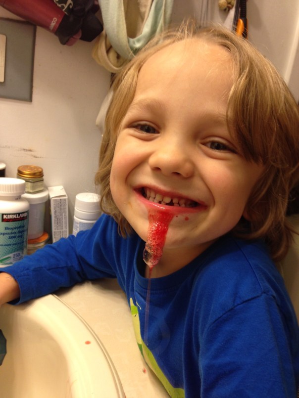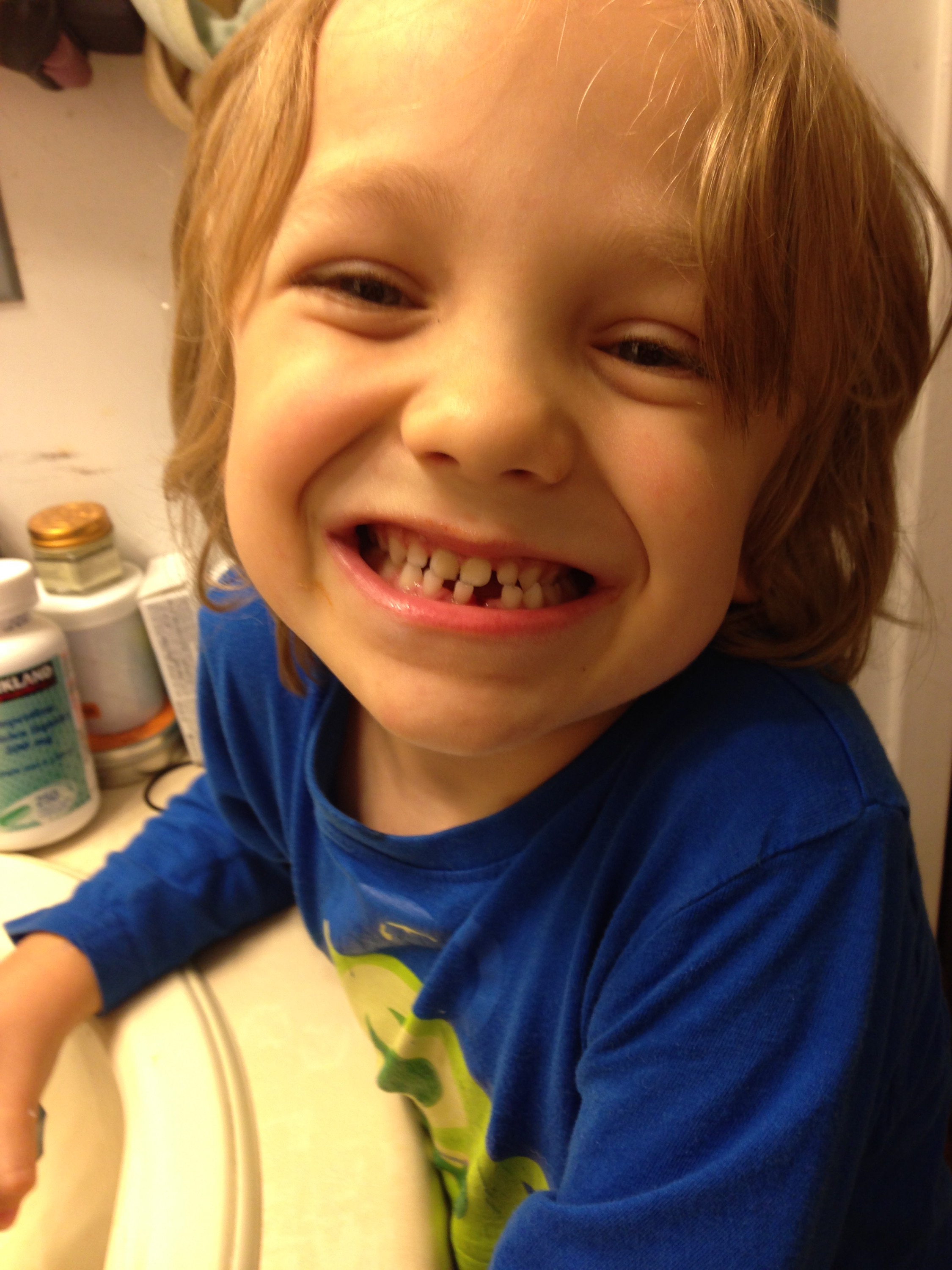 Also, last week he lost his first two teeth. The bottom middle ones were just so so loose! Crazy loose, just seemed to be hanging on by a thread! Finally, the first came out last Monday night and the next followed on Wednesday.